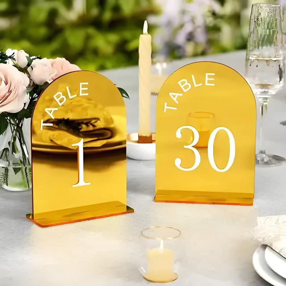 Zlate zrcalne akrilne plošče je mogoče uporabiti za ustvarjanje vrhunskih napisov/logotipov, ki ustvarjajo tridimenzionalne napise in logotipe blagovnih znamk z izrezovanjem ali rezanjem. Zlate zrcalne akrilne plošče se lahko uporabljajo za ustvarjanje znakov/sistemov za iskanje poti za hotele, klube, poslovne zgradbe in druge podobne lokacije.